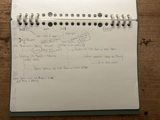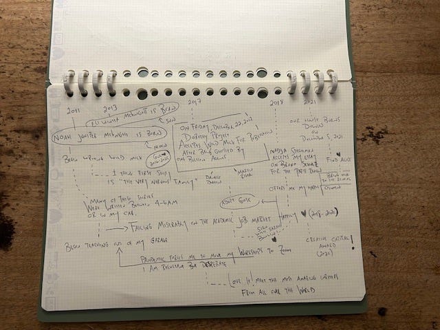 At 6:42am, with my dog sprawled heavily across my legs, and my husband’s cpap machine blowing air in a rhythm that I pretend is the ocean (and it’s really not), this found me. What I keep relearning is that all the writing happens before the page. What a journey ✨✨